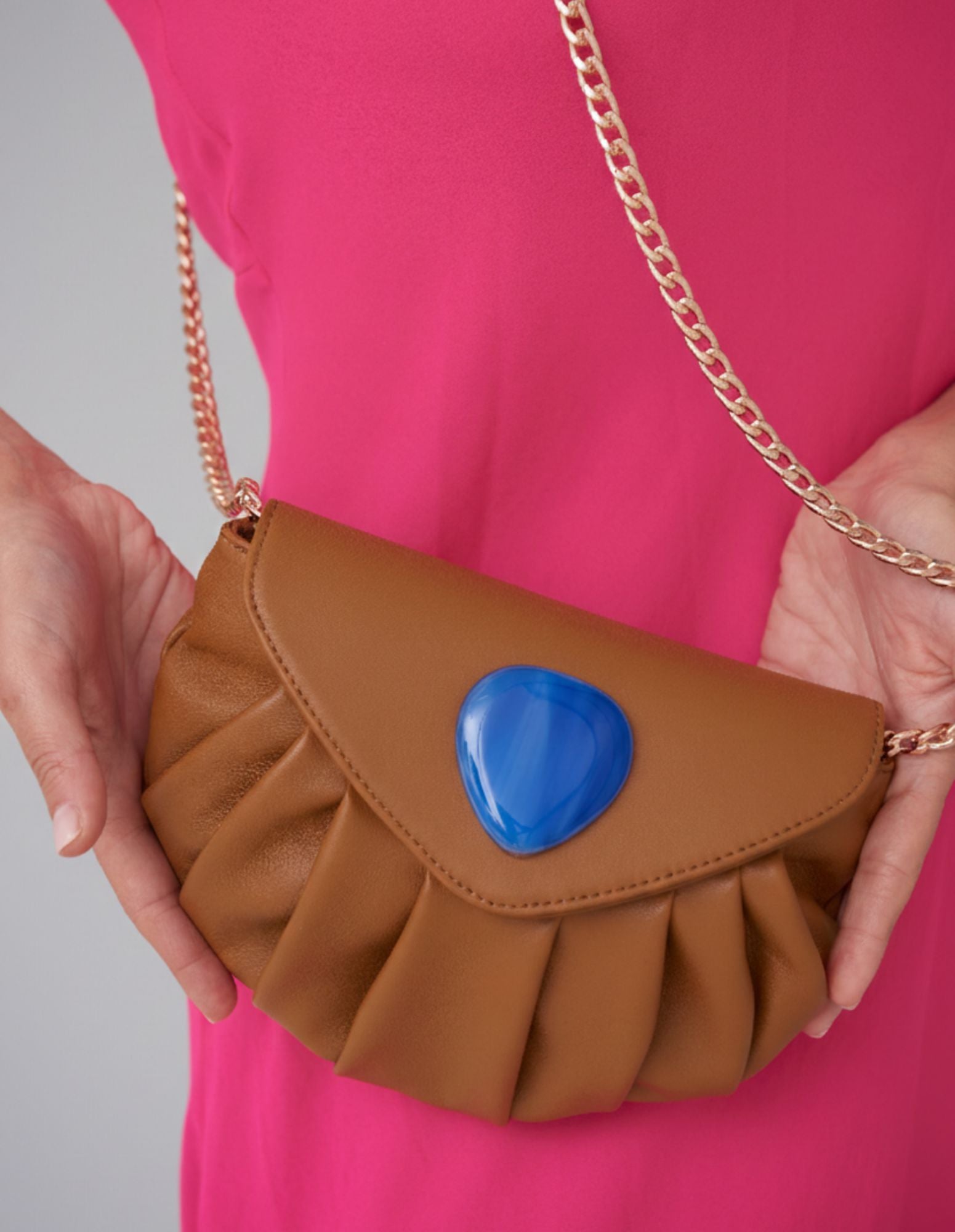 Per preservarne la bellezza autentica, evita il contatto con acqua, oli o profumi. Pulisci delicatamente con un panno morbido e conserva la borsa nel suo sacchetto protettivo, quando non in uso.